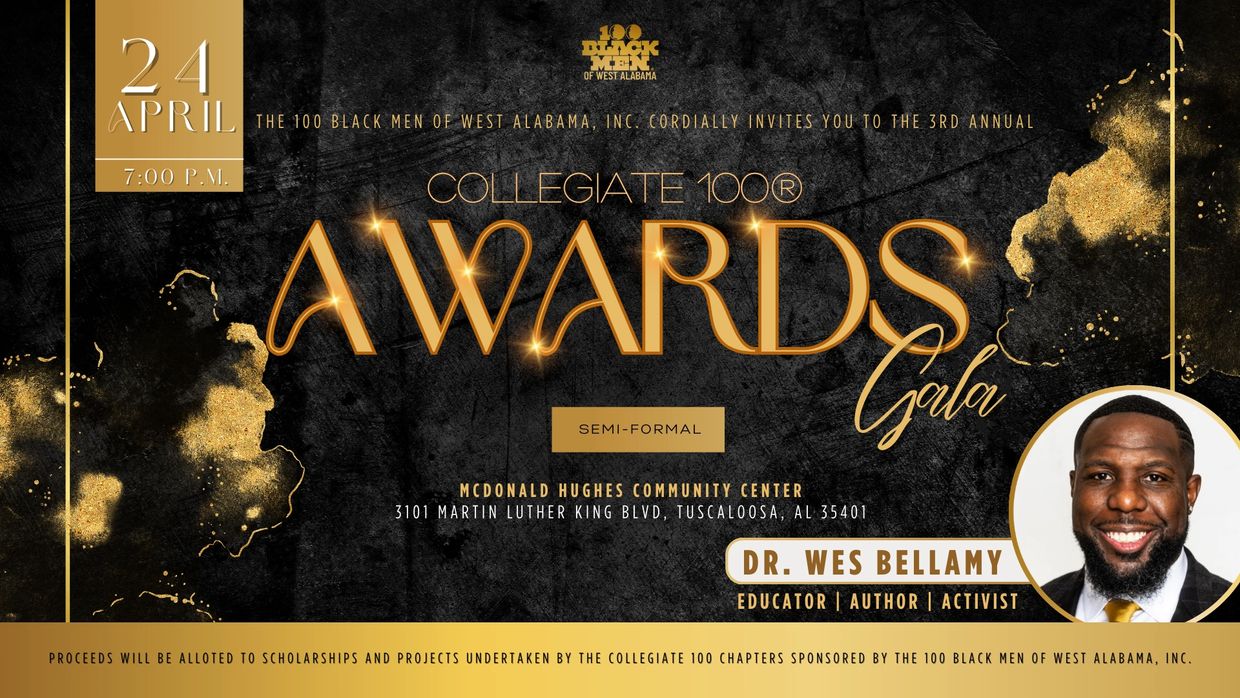 Join us for the third annual Collegiate 100® Awards Gala, an inspiring evening that beautifully blends celebration and purpose. Hosted by the 100 Black Men of West Alabama, Inc. (100 BMOWA), this gala honors the dedication and commitment of 100 BMOWA and Collegiate 100® members who strive to make a lasting impact in our community.